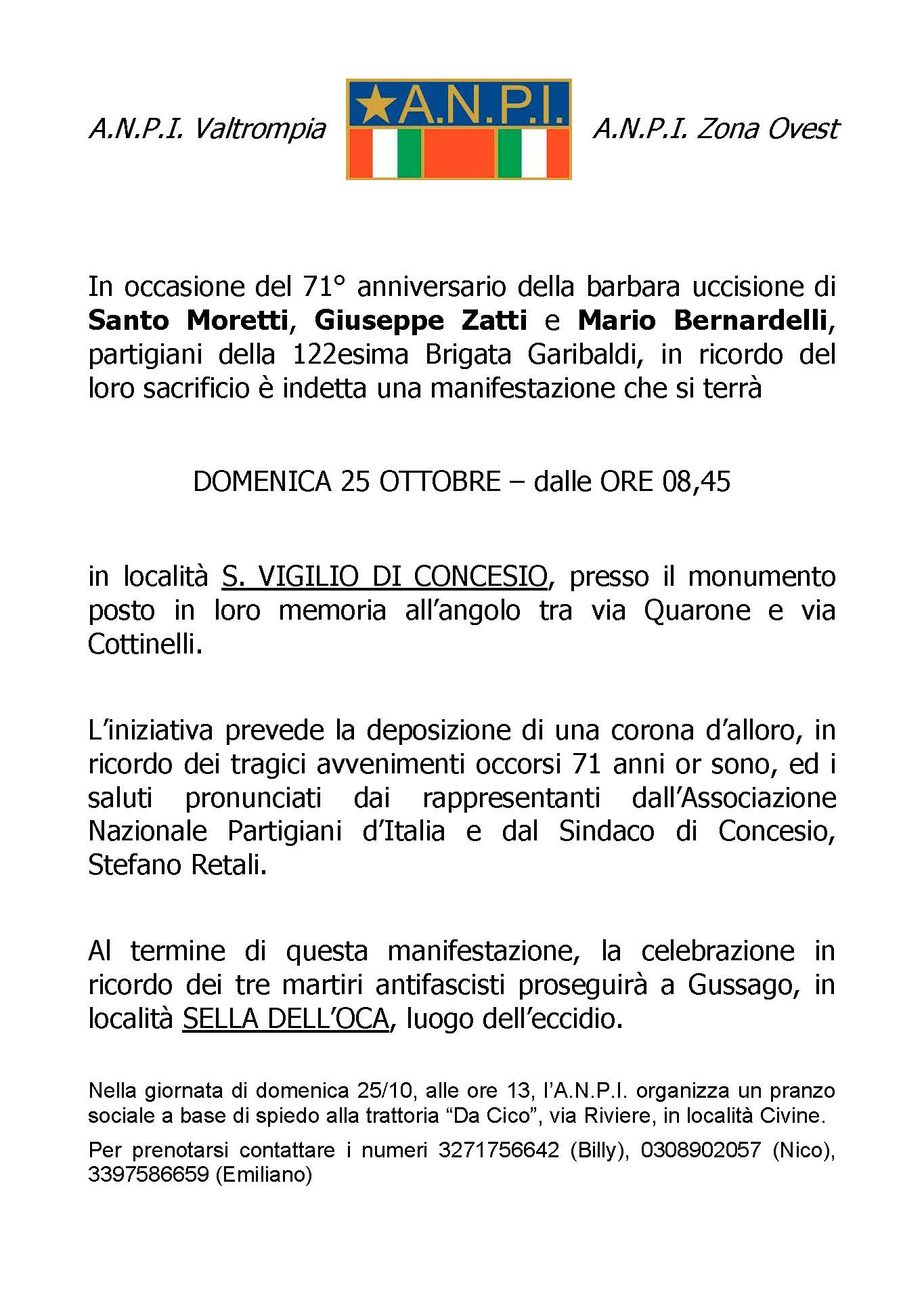 Commemorazione dei caduti di Sella dell’Oca. S.Vigilio di Concesio e Gussago, domenica 25 ottobre 2015 22 Ottobre 2015 // by ANPI Brescia Correlati