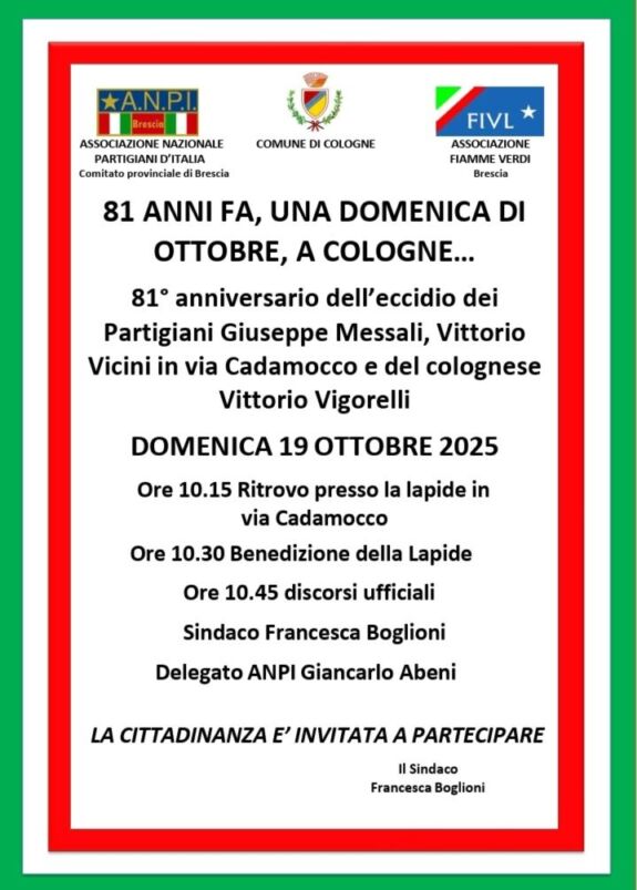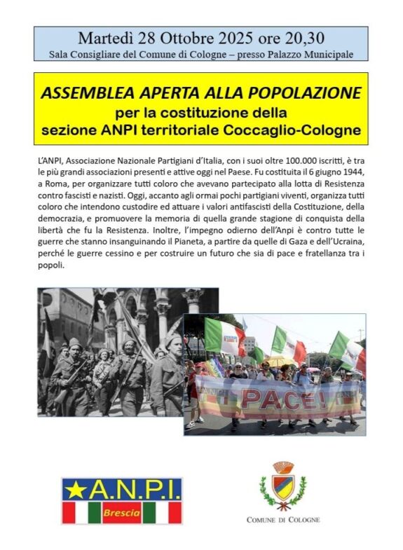 Iniziative ottobre 2025 28 Settembre 2025 // by ANPI Brescia Lettera aperta ANPI agli abitanti di Provaglio su intitolazione piazza ChioscoDownload Correlati