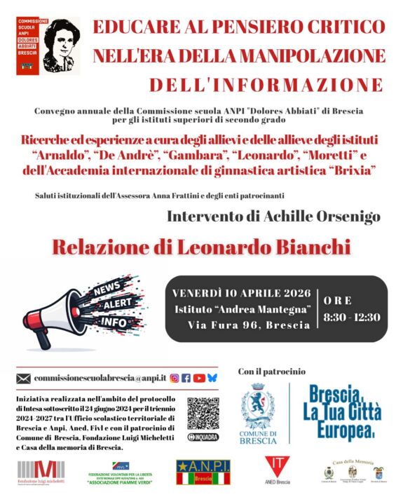 Il Convegno 2026 per gli Istituti secondari di 2° grado della città e della provincia di Brescia si svolgerà venerdì 10 aprile 2026 presso l’aula magna dell’Istituto Mantegna a Brescia.